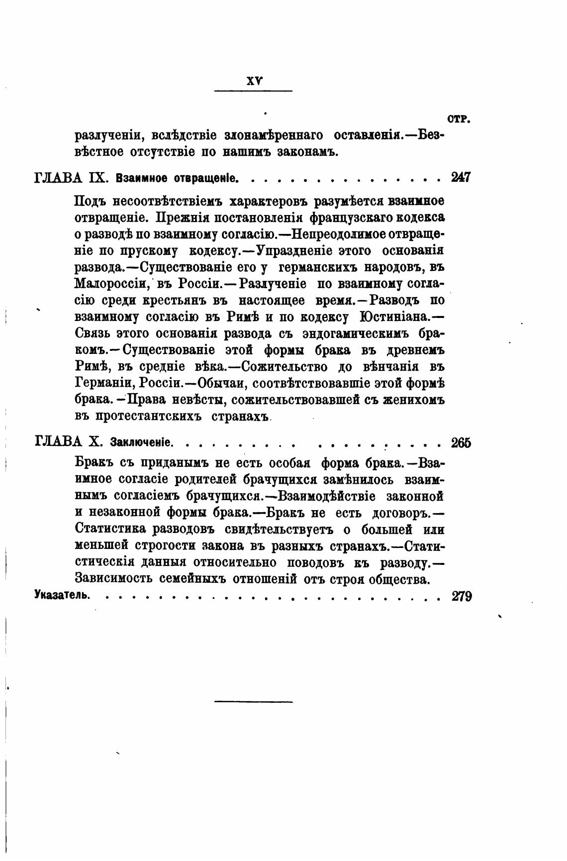 данныя относительно поводовъ въ разводу.—