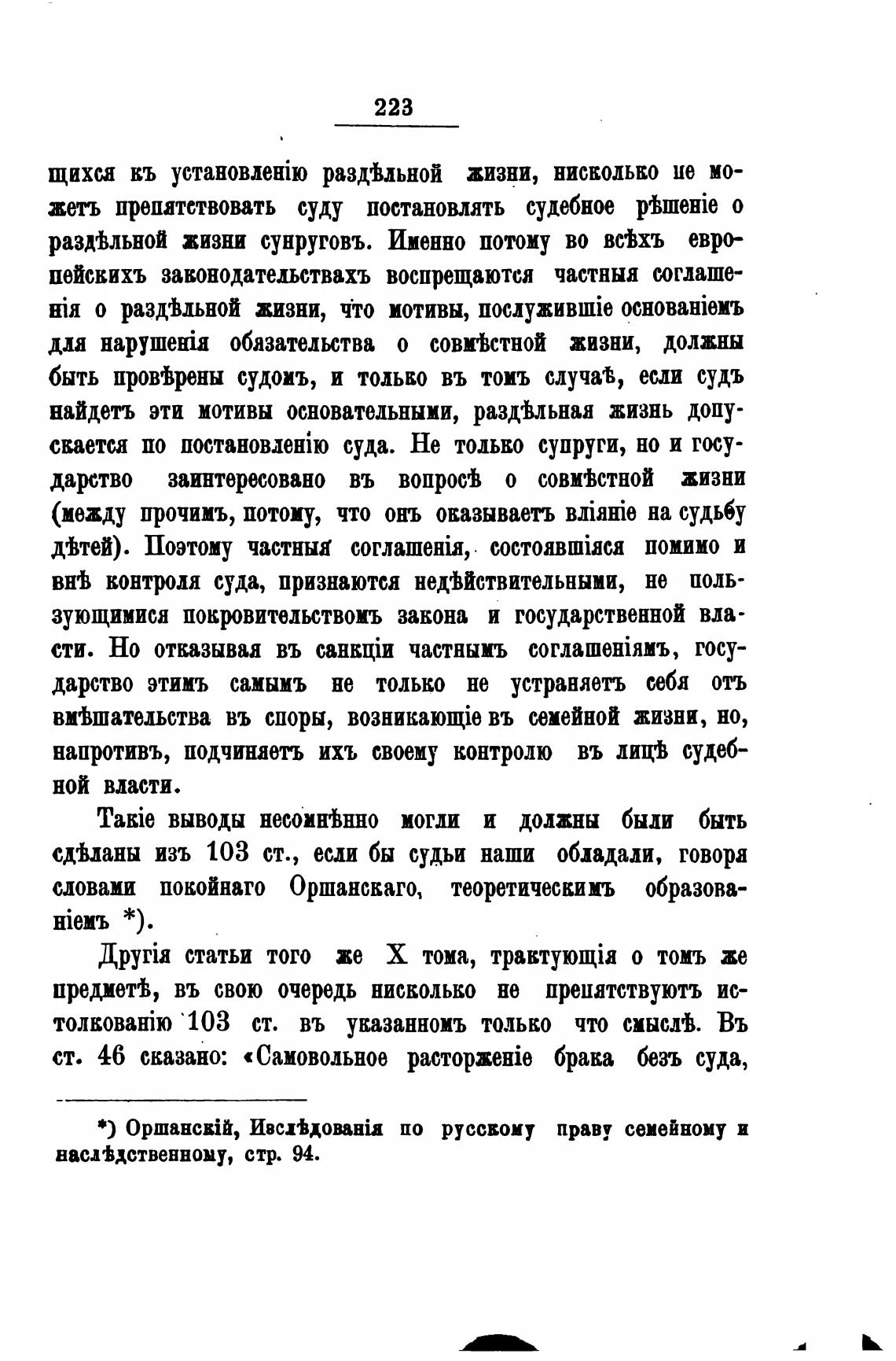 *) Оршансвт, по русскому праву семейному и