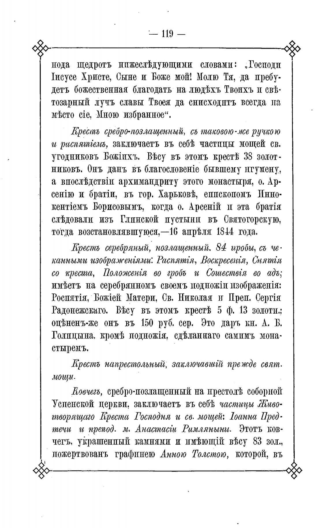Радонежскаго. Тсу въ этомъ крестј 5 ф. 13 золоти.;