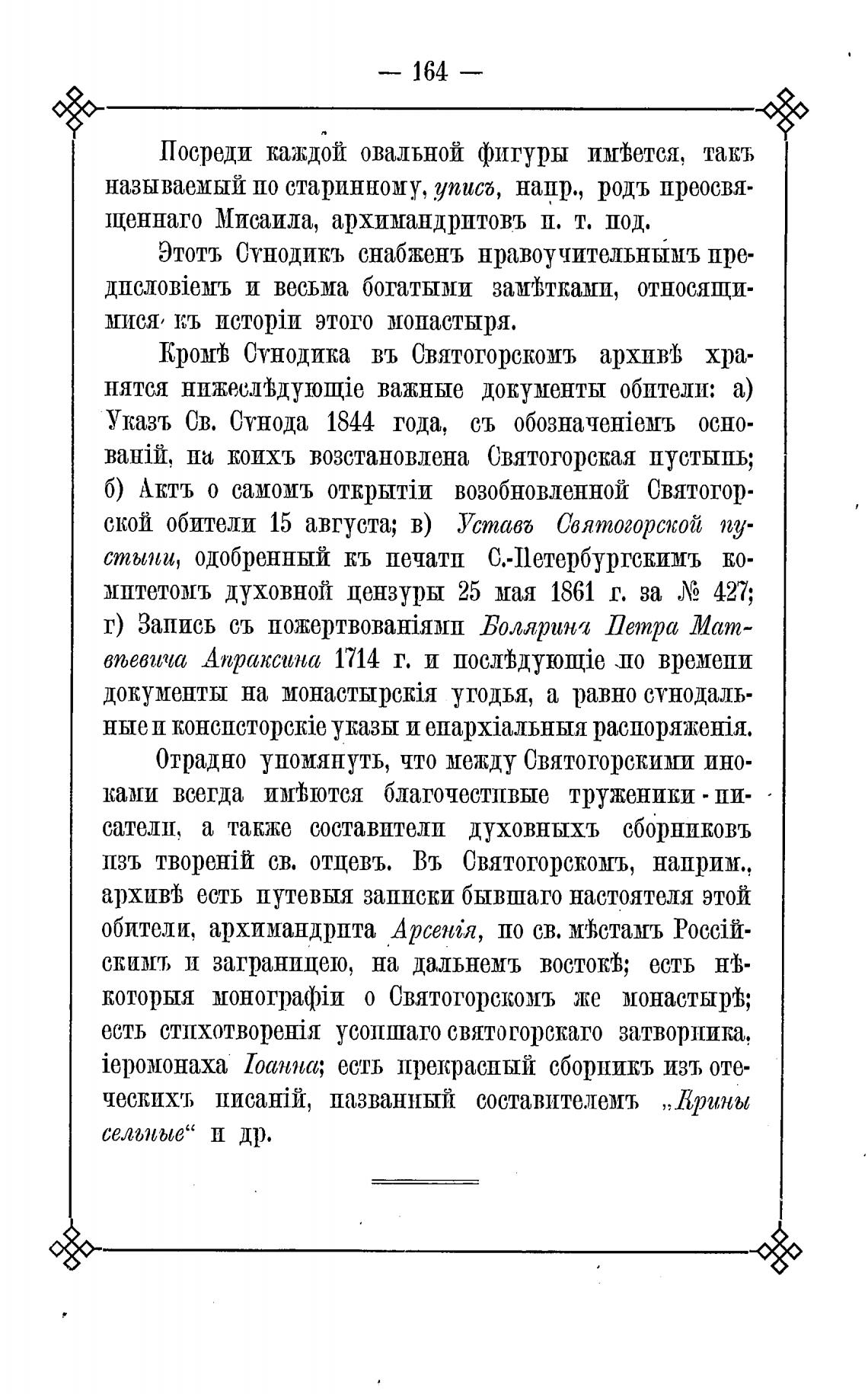 Кромгђ Сунодика въ Святогорскомъ архиуь хра-