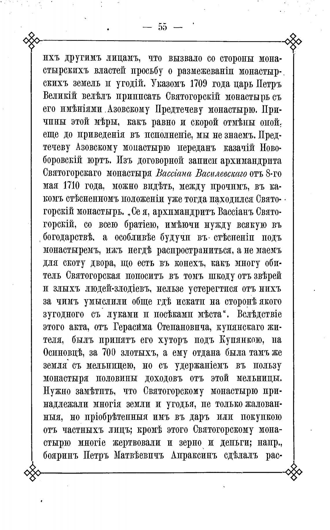 течеву Азовскому монастырю переданъ kuayifI Ново-