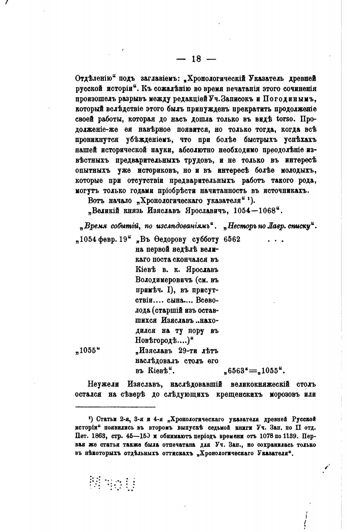 Воть начало „Хронологическаго указатияЦ 1).