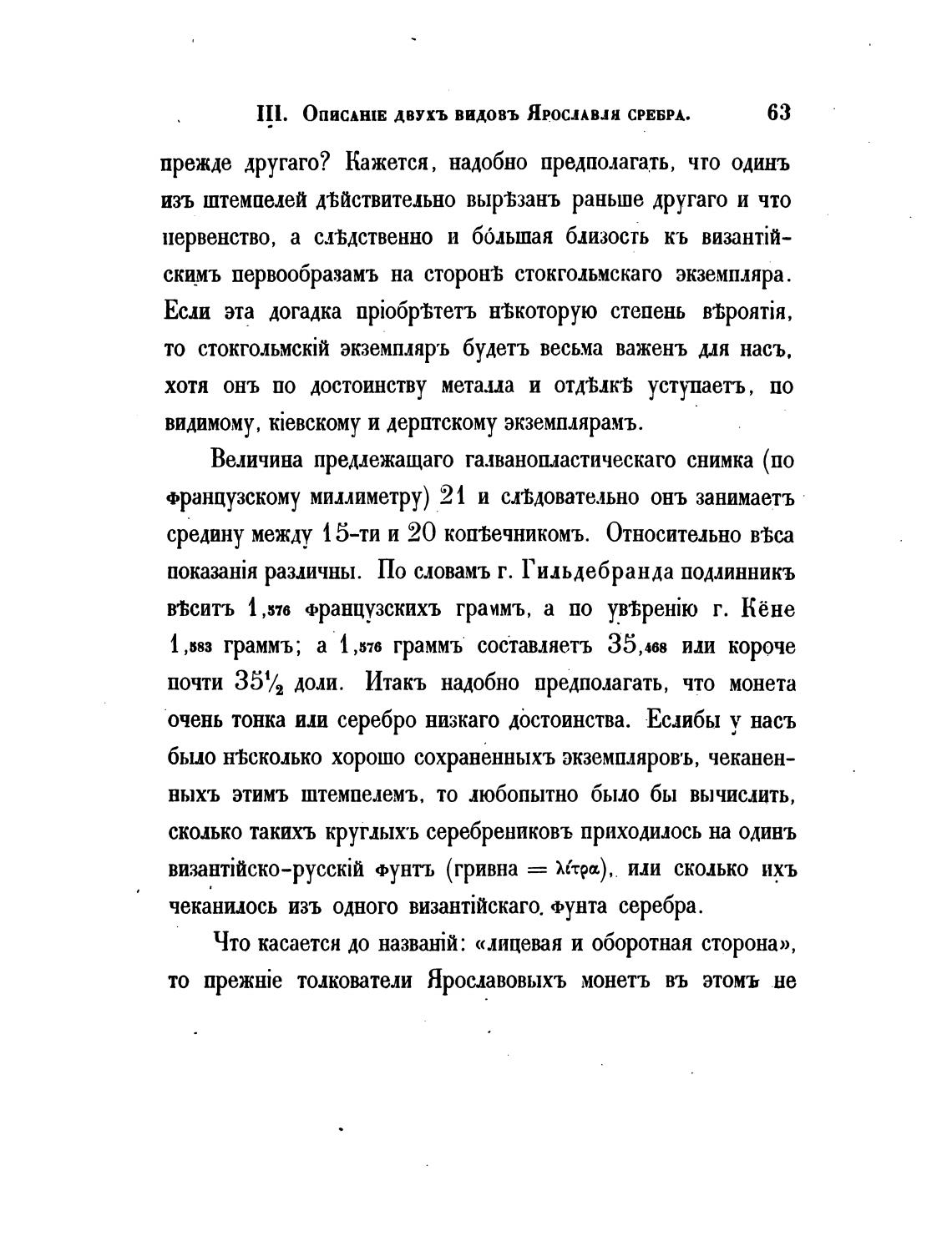 IIl. ОПИСАНIЕ двухъ ВИДОВЪ ЯРОСЛАВ.Ш СРЕБРА.