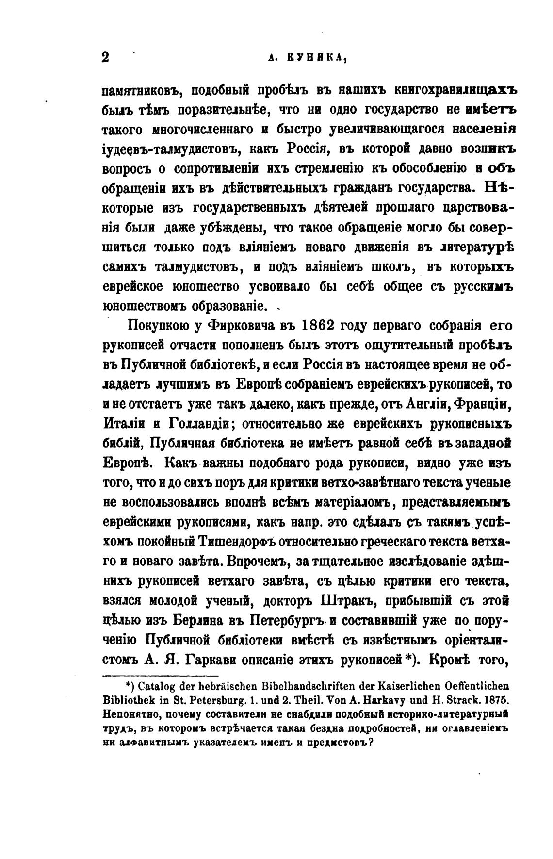 Bibliothek in St. Petersburg. 1. und 2. Theil. Von А. Harkavy und Н. Strack. 1875.