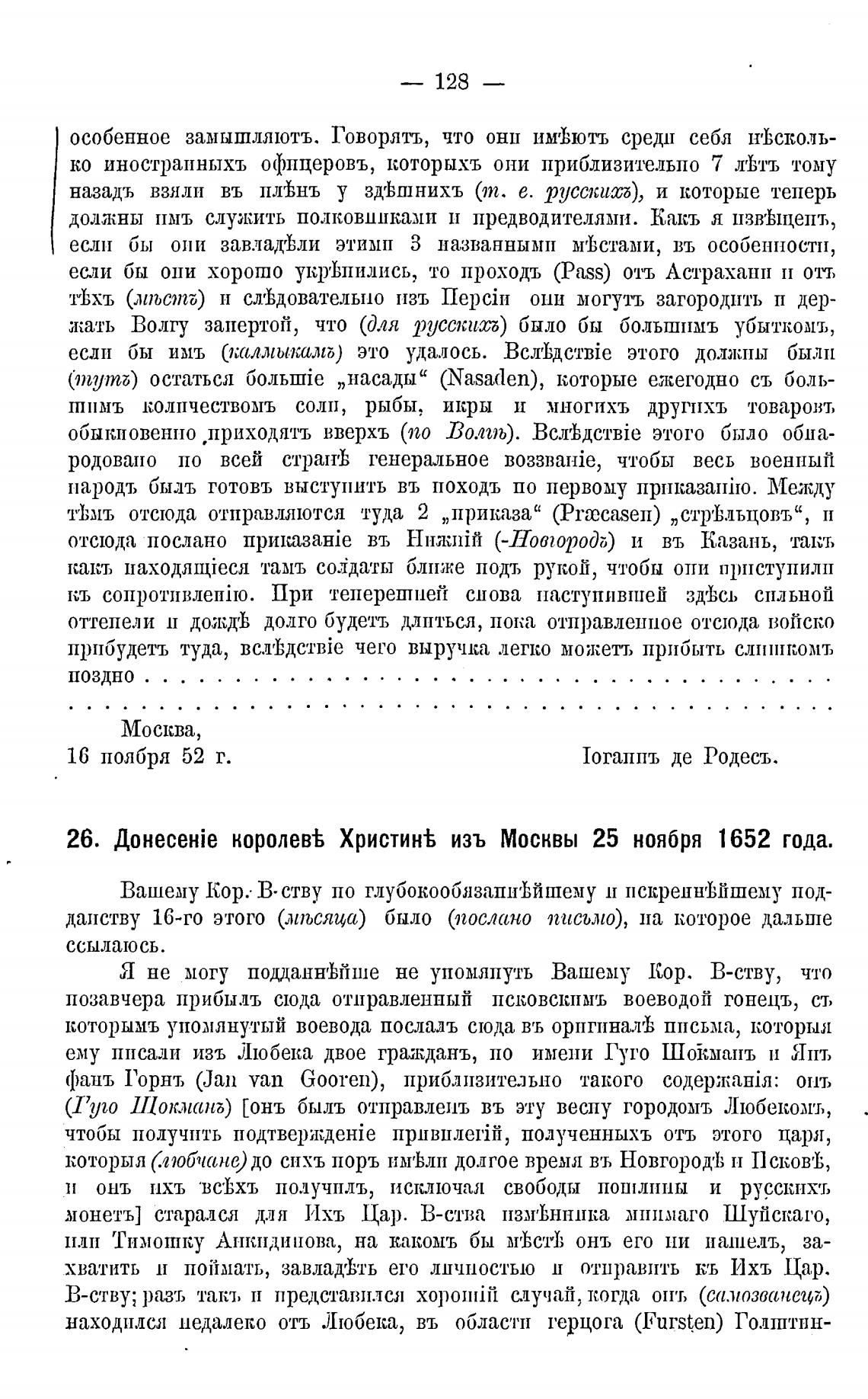 26. королев% Христин% изъ Москвы 25 ноября 1652 года.