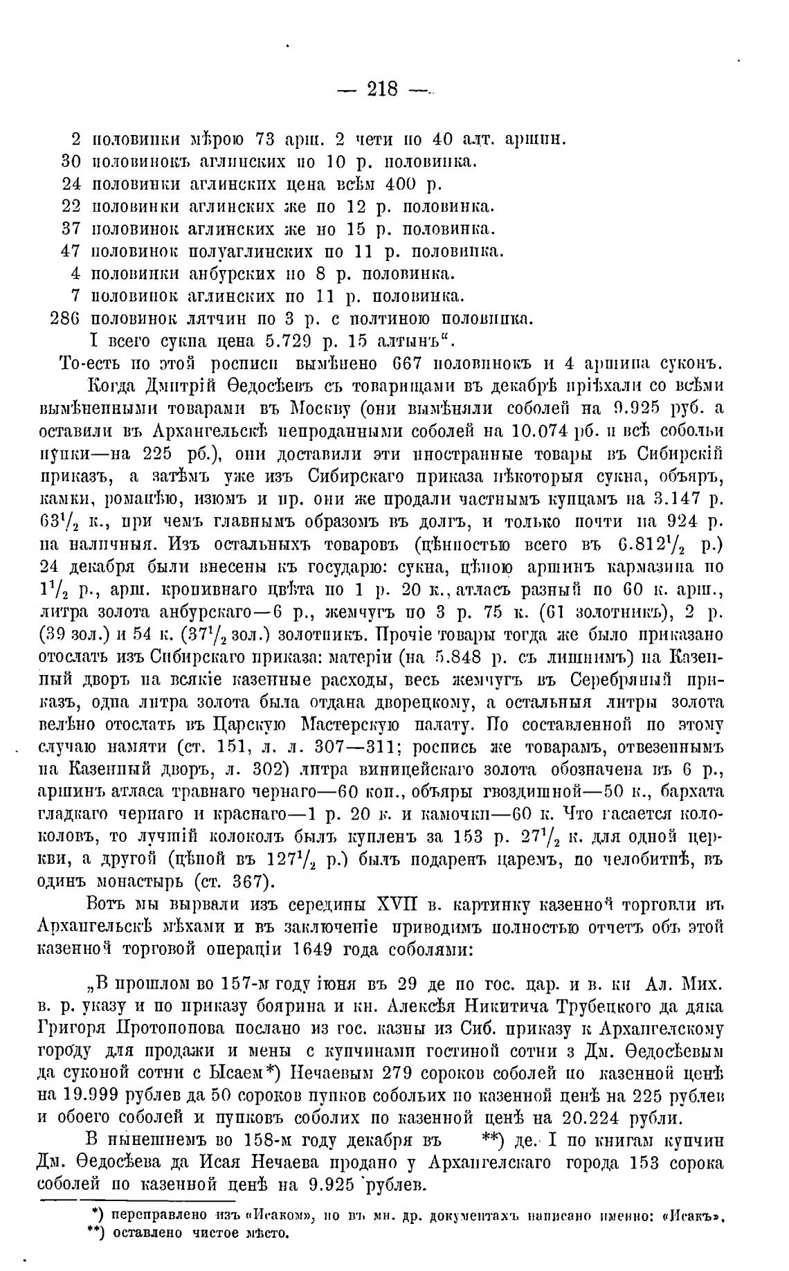 казенной торговой операцји 1649 года соболями:
