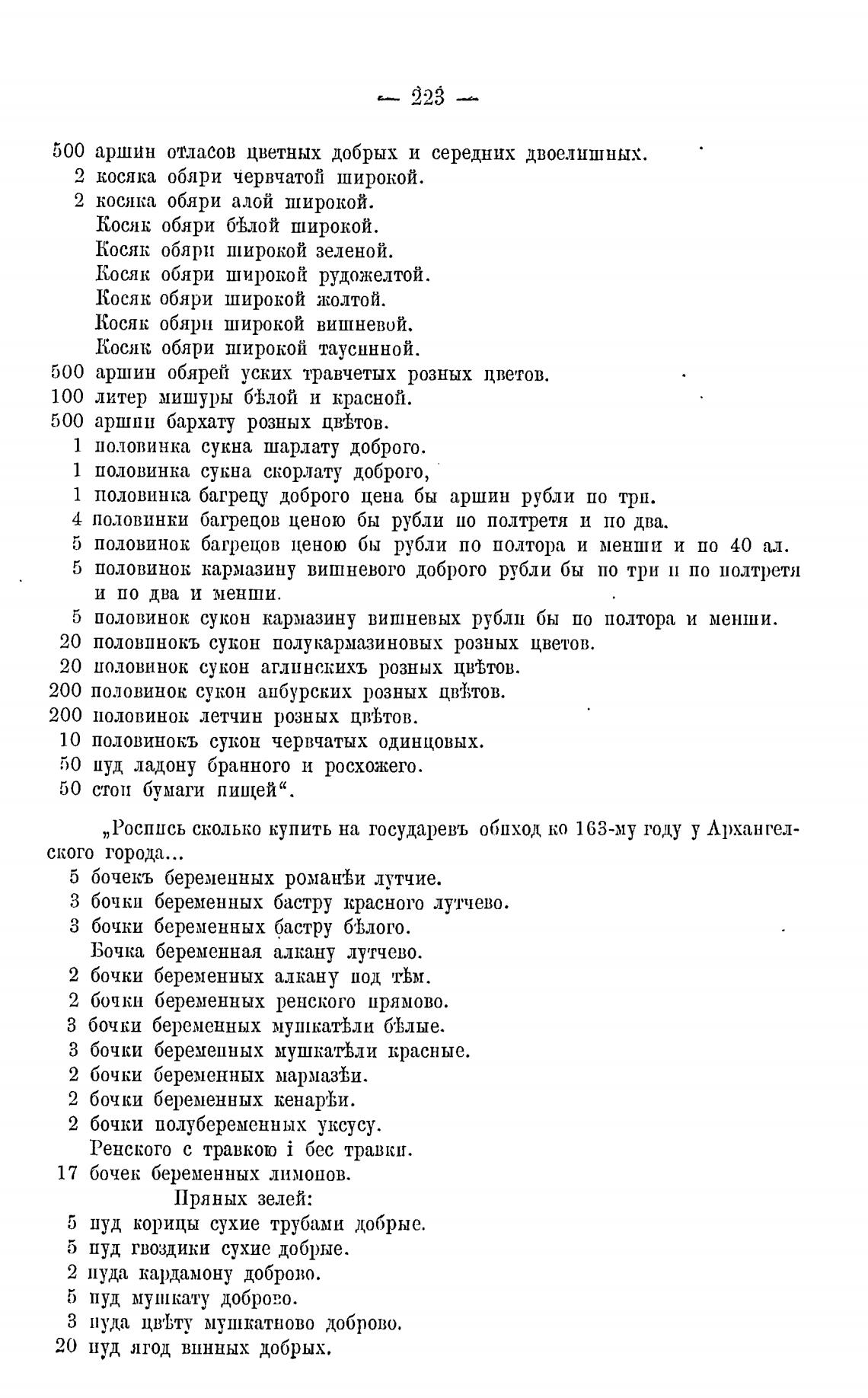 „Роспись сколько купить на государевъ обиход ко 163-му году у Лрхангел-