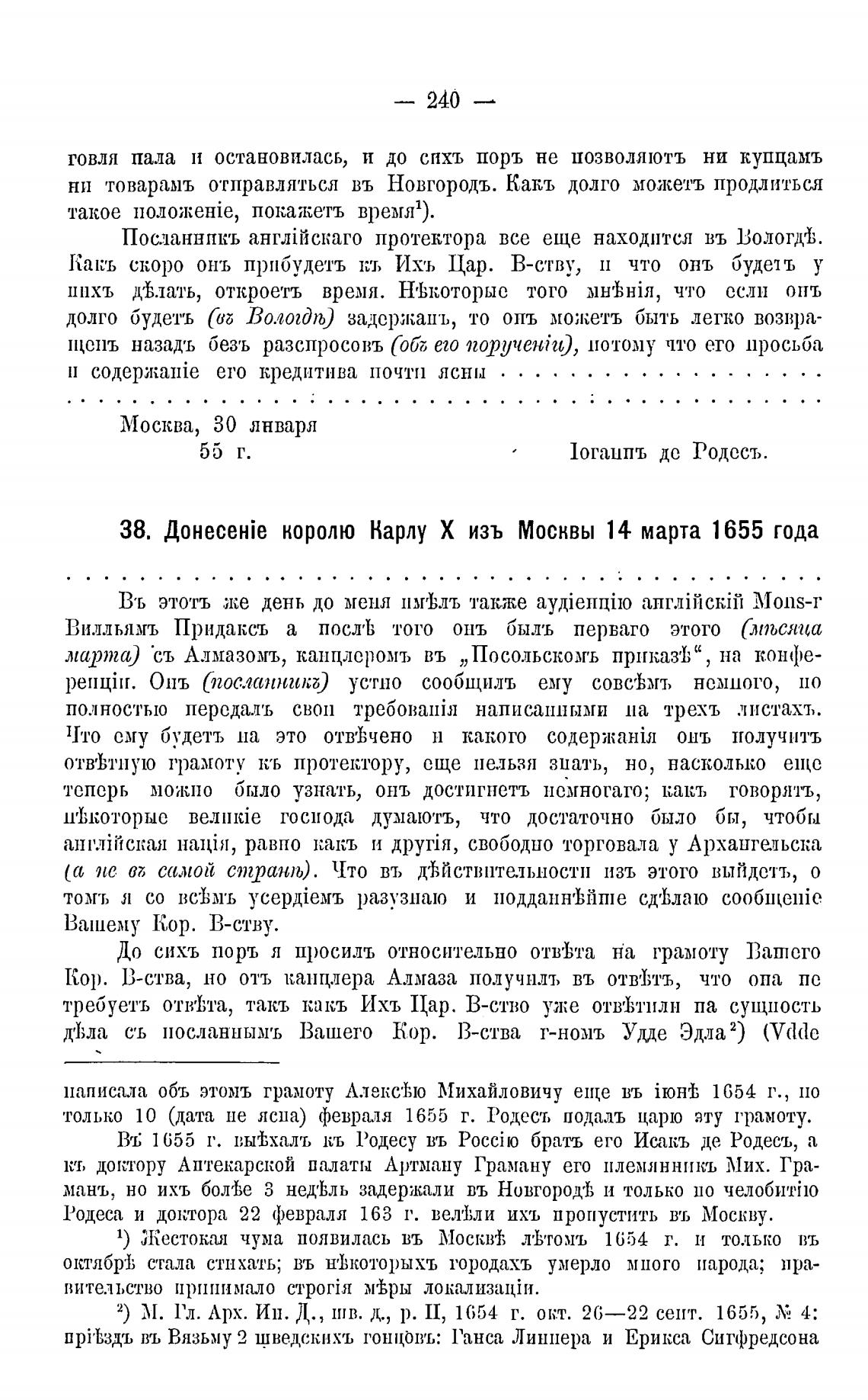 38. ll0HeceHie королю Карлу Х изъ Москвы 14 марта 1655 года