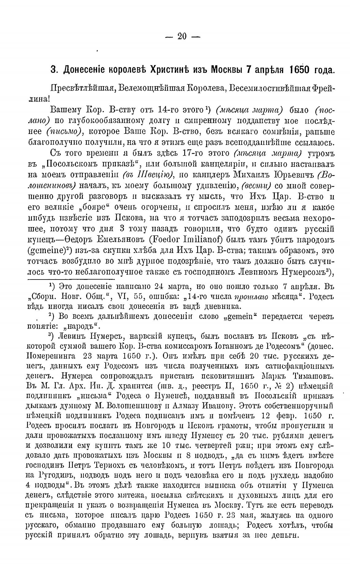 дали ирово•жатыхъ посланному имъ јнведу Нумеису съ 20 тыс. рублями деиегъ