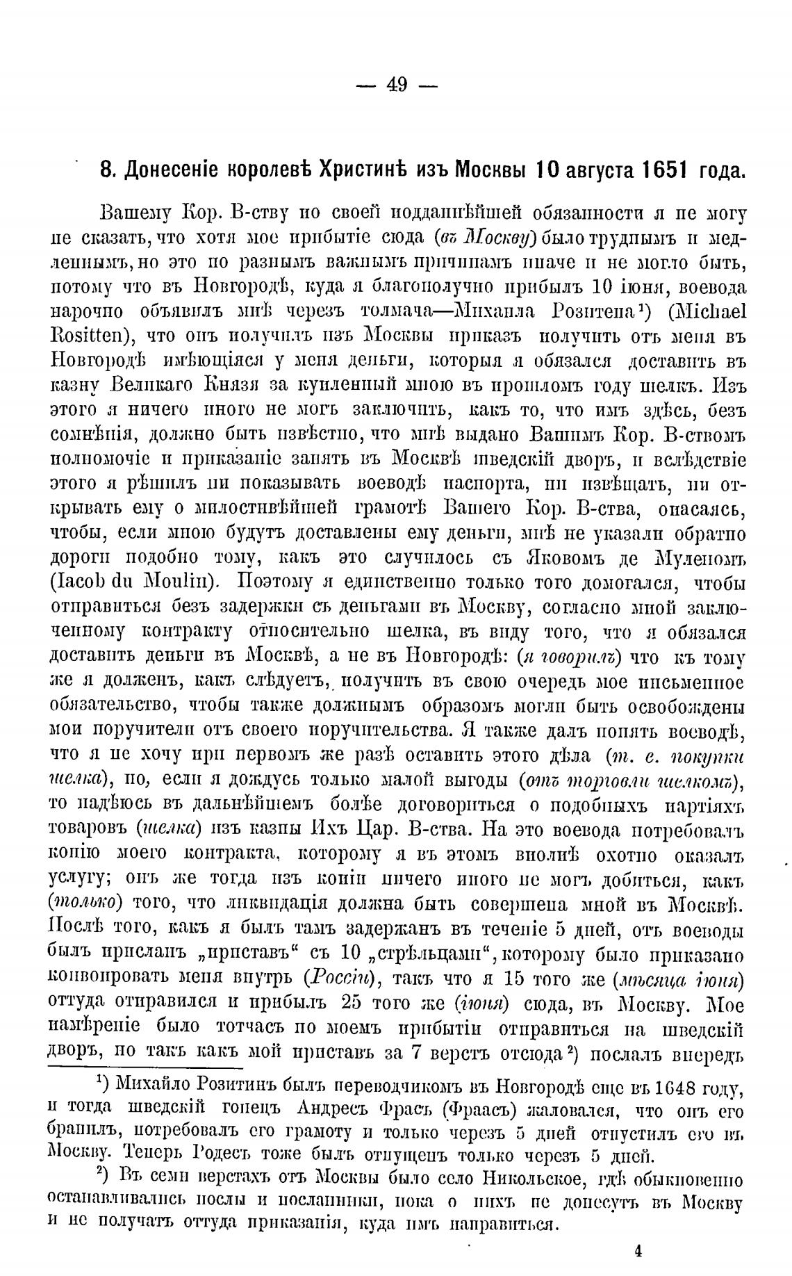 1) Михайло Розитинъ быль переводчикомъ въ Новгород•]; сјце въ 1648 году,