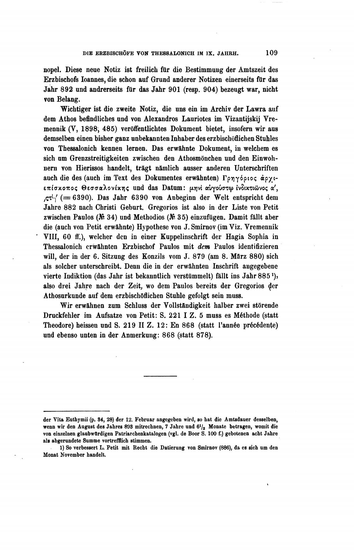 1) verbessert Ь. Petit mit Recht die Datierung von Smirnov (886), da ев 8ich ит den