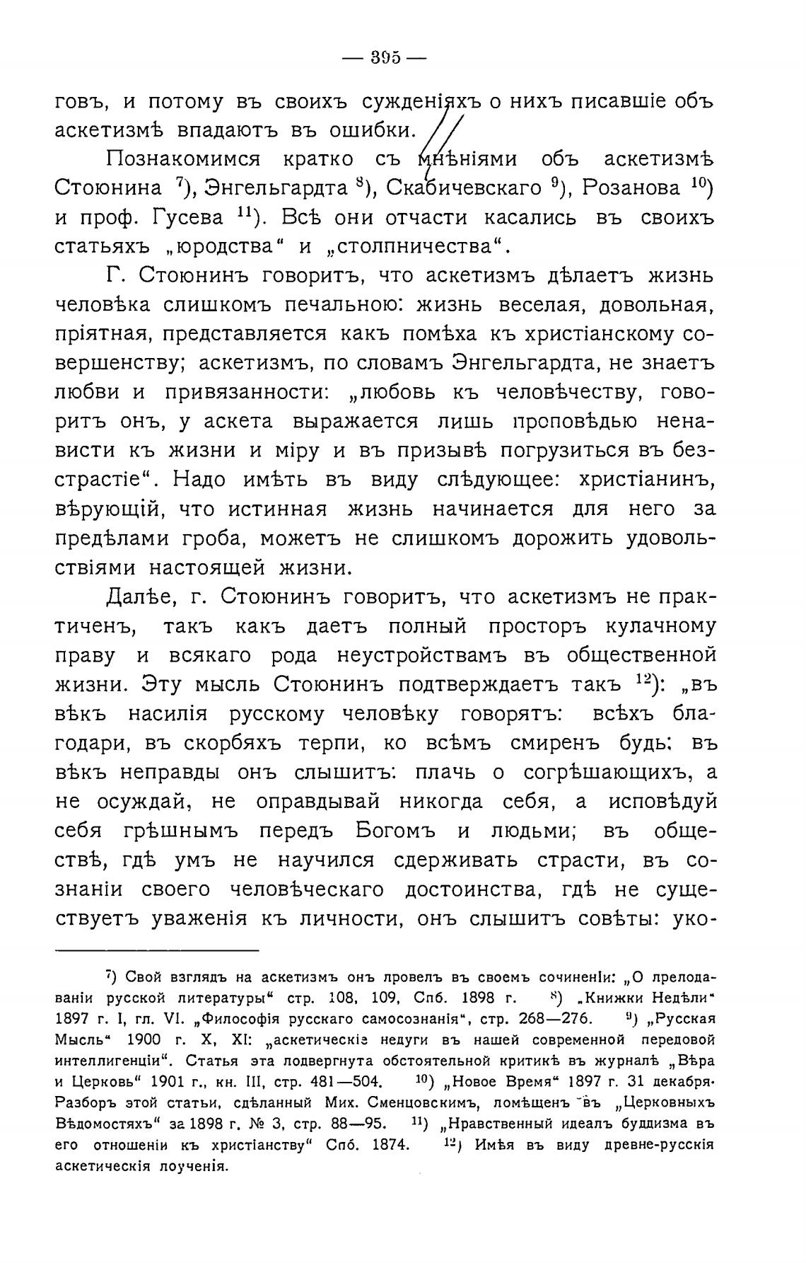 Г. Стоюнинъ говорить, что аскетизмъ дьлаетъ жизнь