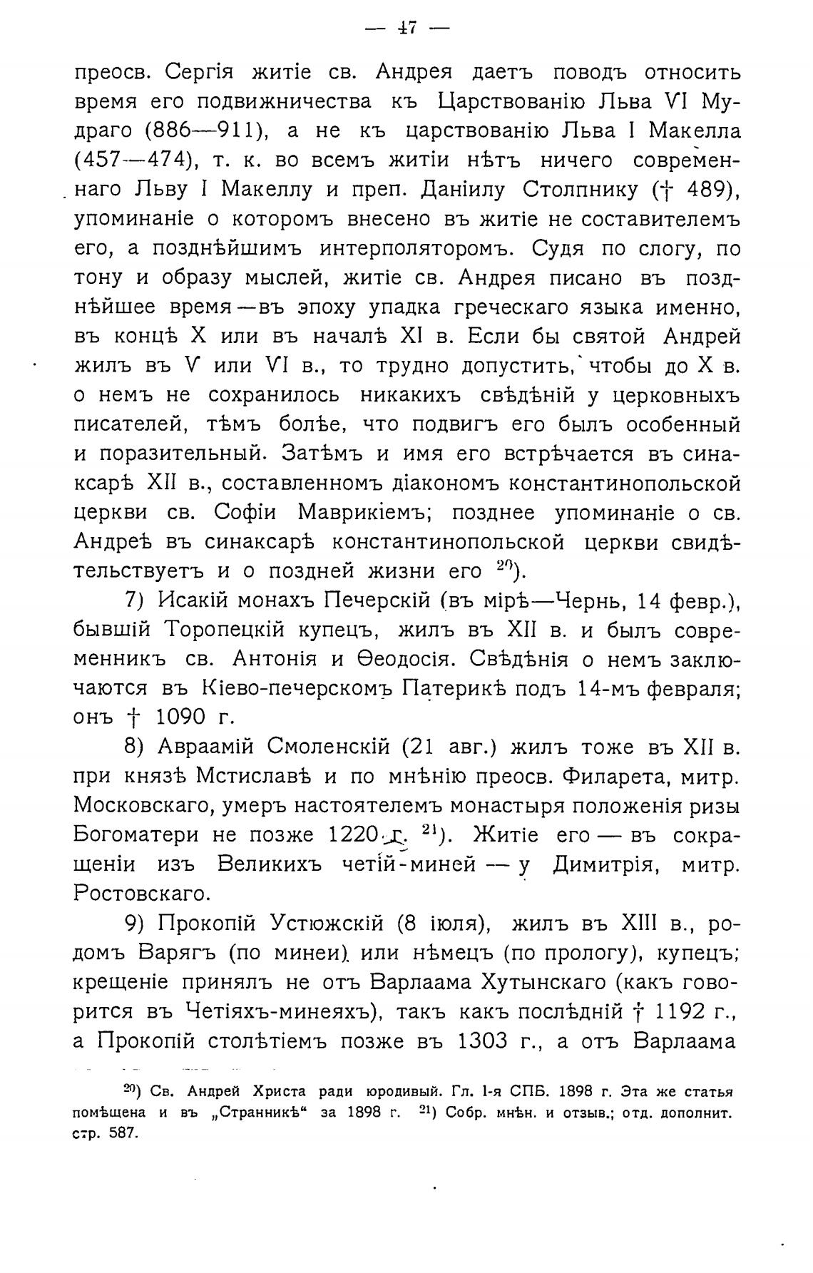 20) Св. Андрей Христа ради юродивый. Гл. 1-я СПБ. 1898 г. Эта же статья