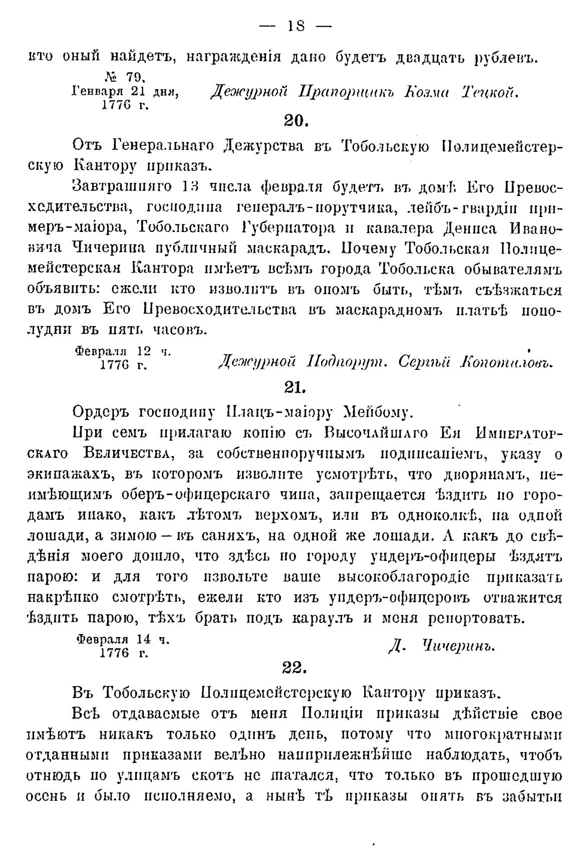 Въ Тобольскую Полицемейстсрскую Кантору приказъ.