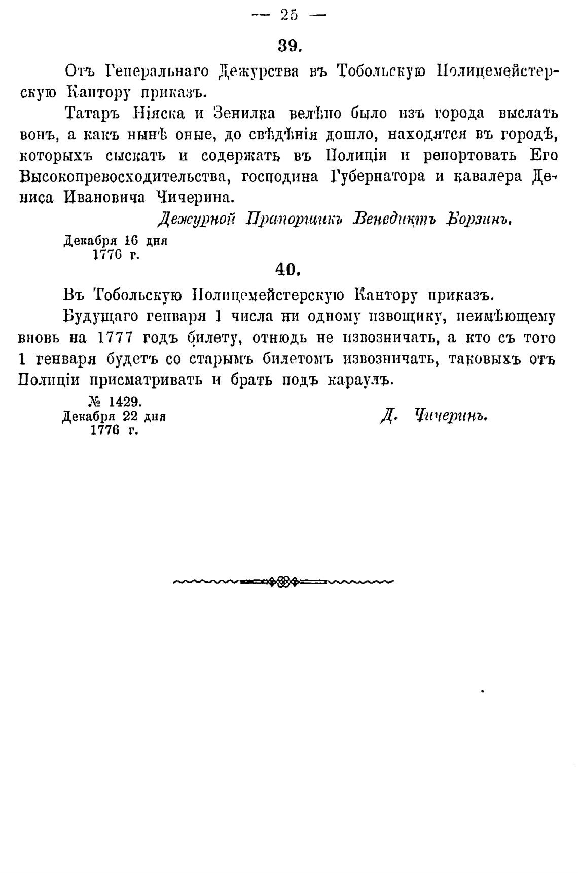 Отъ Генеральнаго Дежурства въ Тобольскую Полицемейстер-