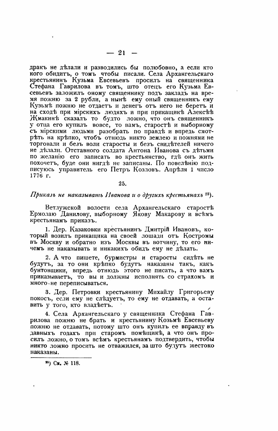 Приказъ не наказывать Иванова и о другихь крестьянахь 25).
