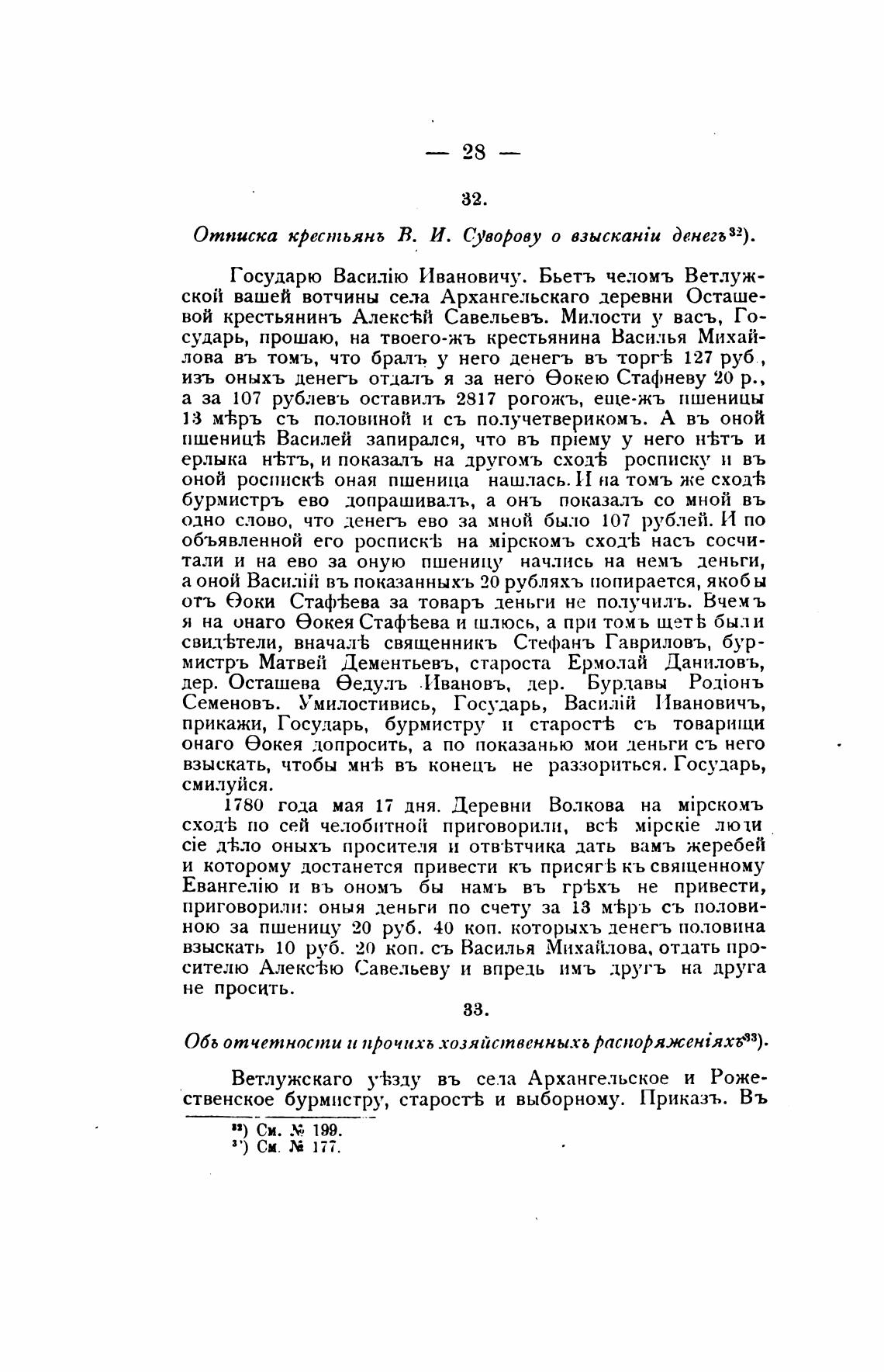 Отписка крестьянь В. И. С.)'ворову о Денегъ 32).
