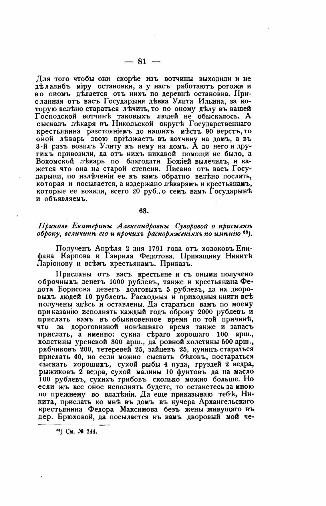 оброку, величинљ его и прочихъ Распоряжен:яхб по 63).