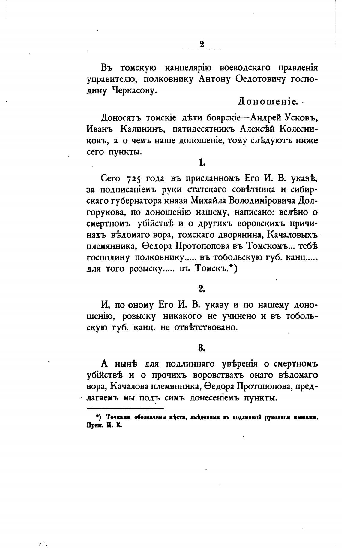 нахъ в±домаго вора, томскаго дворянина, Качаловыхъ