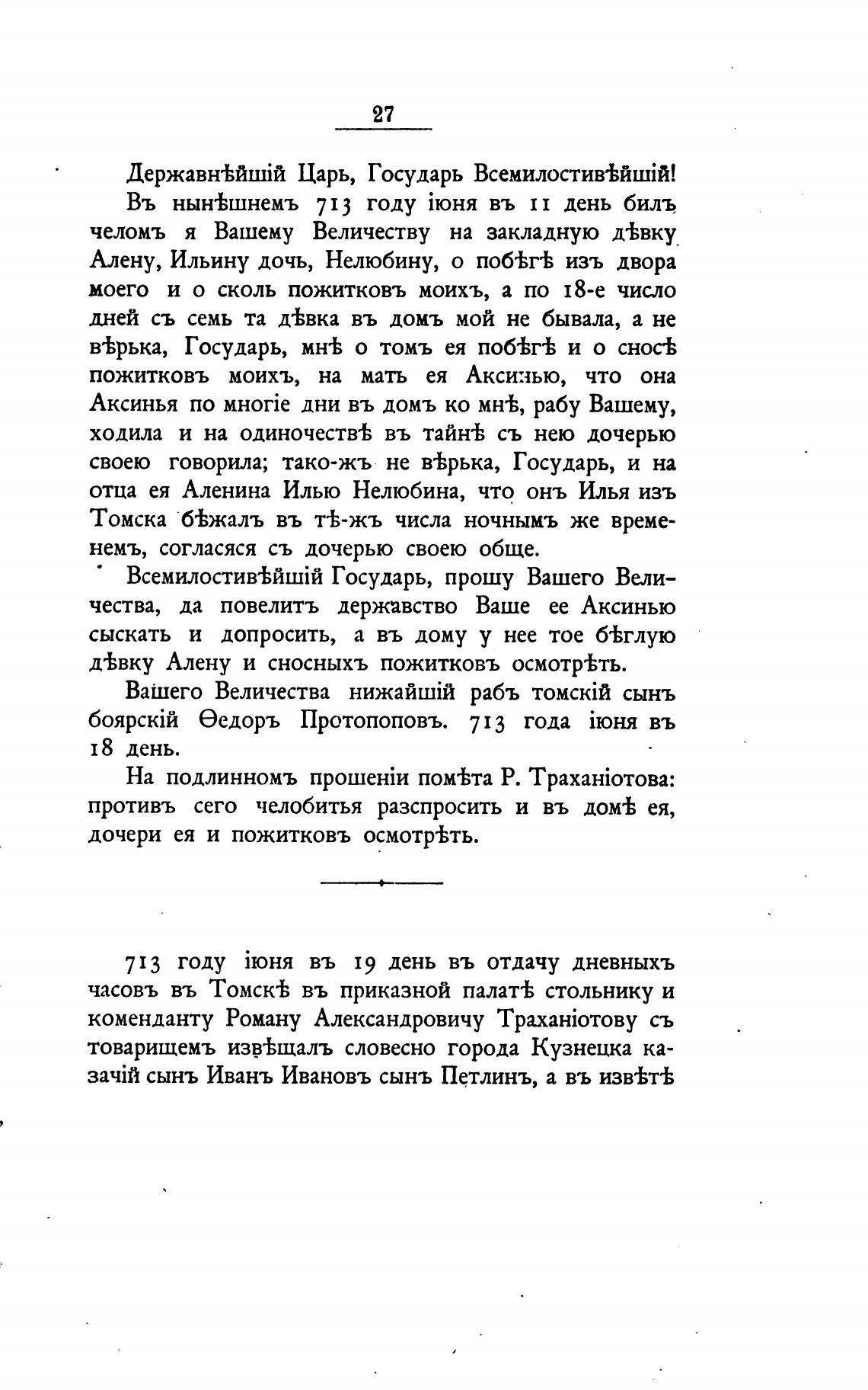 еедоръ Протопоповъ. 713 года въ