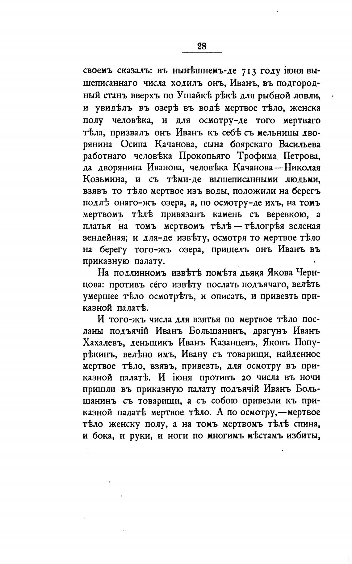 казной палатЬ мертвое т±ло. А по осмотру,—мертвое
