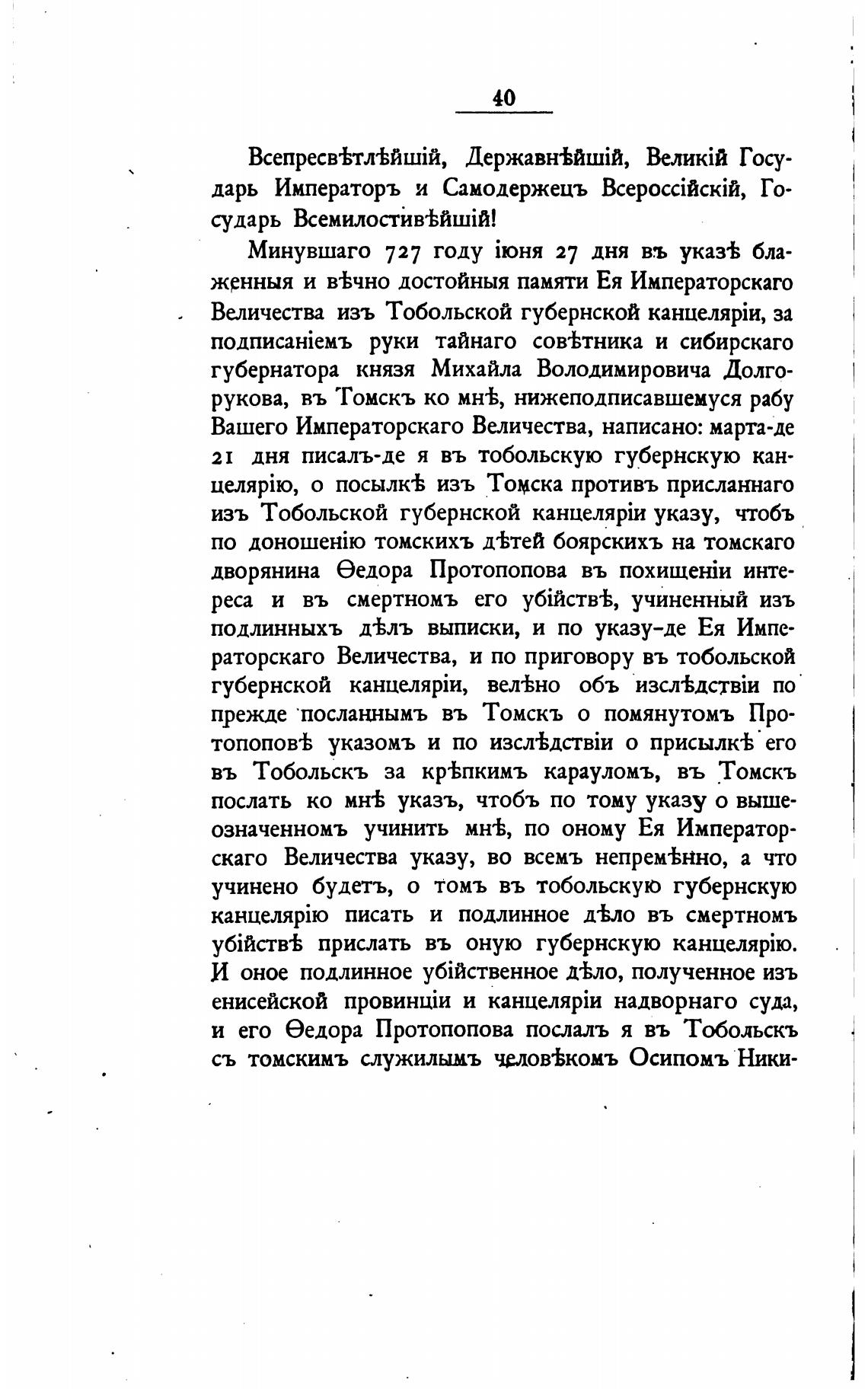раторскаго Величества, и по приговору въ тобольской