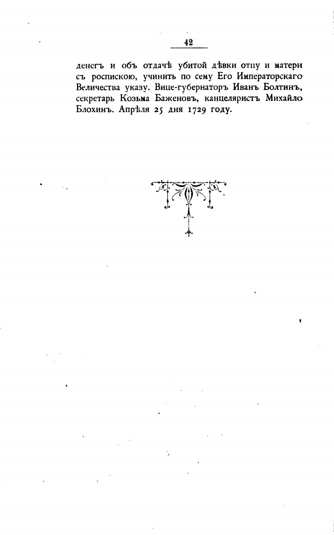 Блохинъ. Апр±ля 25 дня 1729 году.