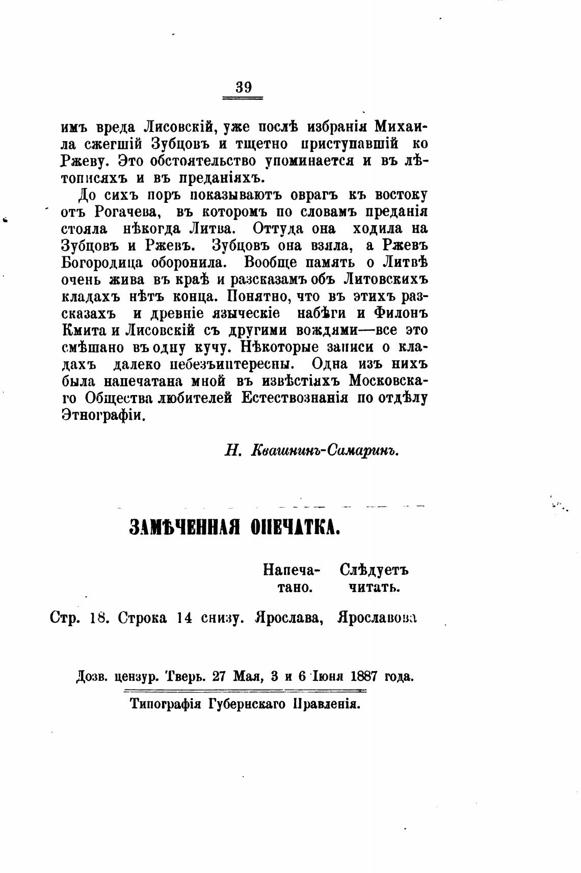 Дозв. цензур. 'Гверь. 27 Мая, З и 6 'јюня 1887 года.