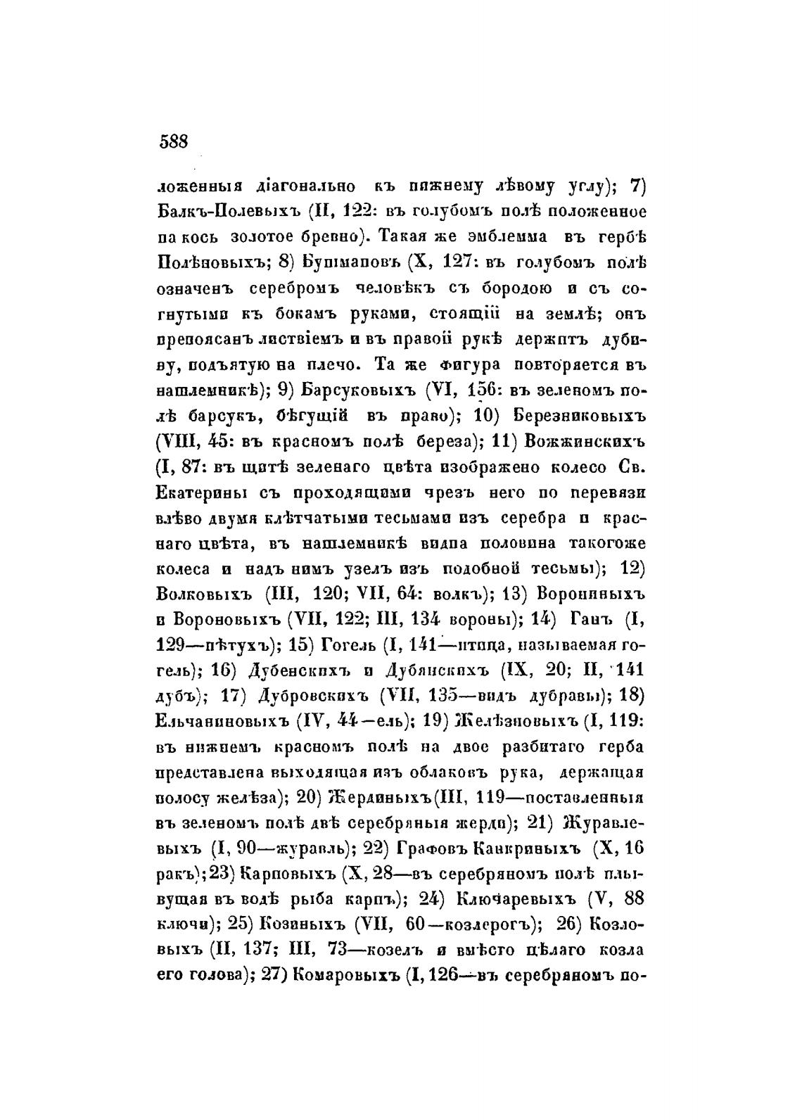 Волковыхъ (III, 120; VII, 64: волка.); 13) Ворониныхъ