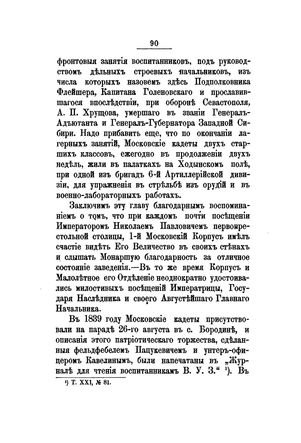 Въ 1839 году Mock0Bckie кадеты присутство-