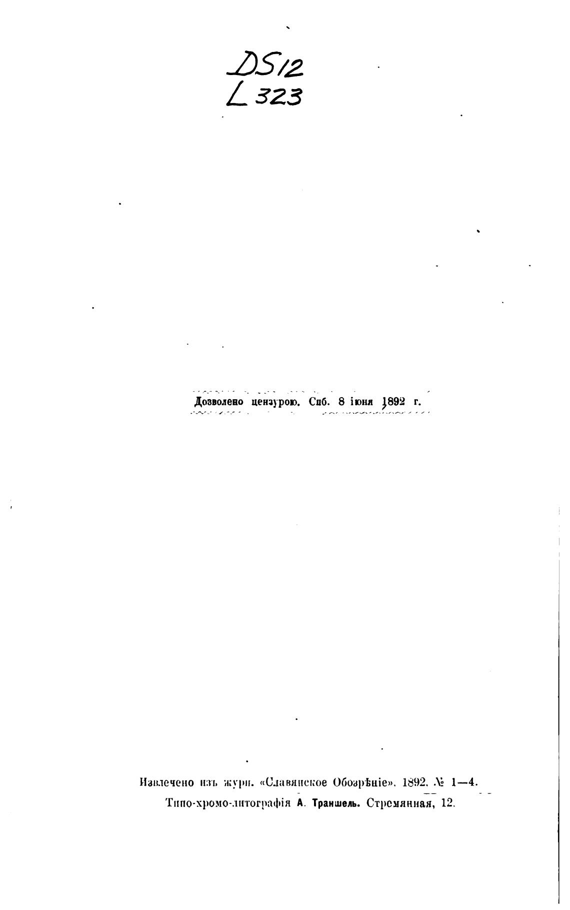 Дозволено цензурою. СПб. 8 )892 г.
