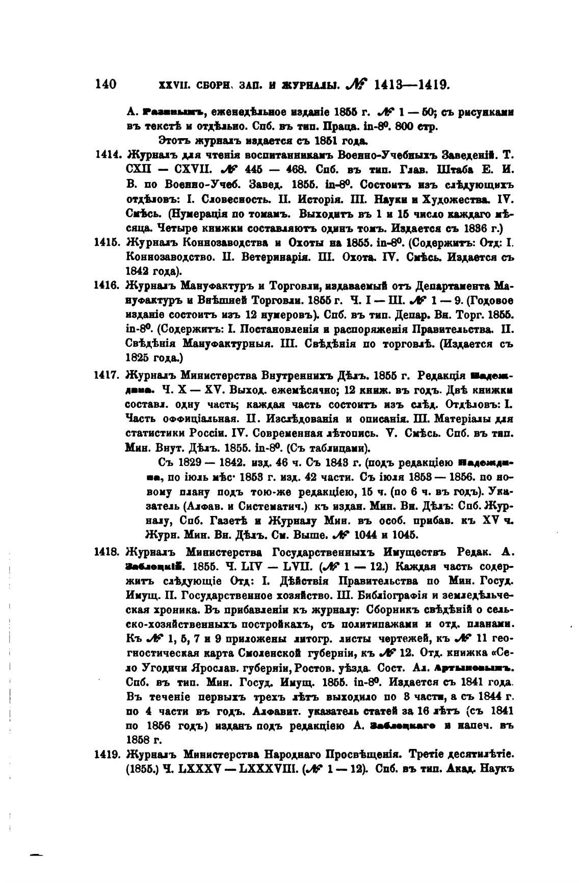 СПб. въ тип. Мин. Госуд. Ииущ. Шб. in-O. Имается съ 1841 года.