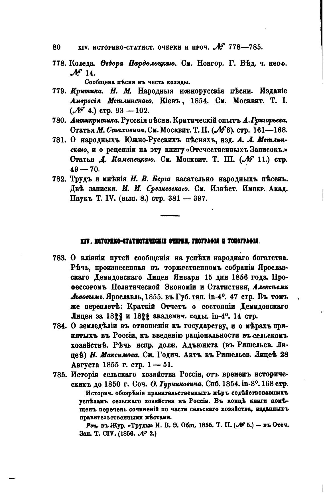 xrv. ИСТОРИКО-СТАТИСТ. ОЧЕРКИ И ПРОЧ. 778—785.