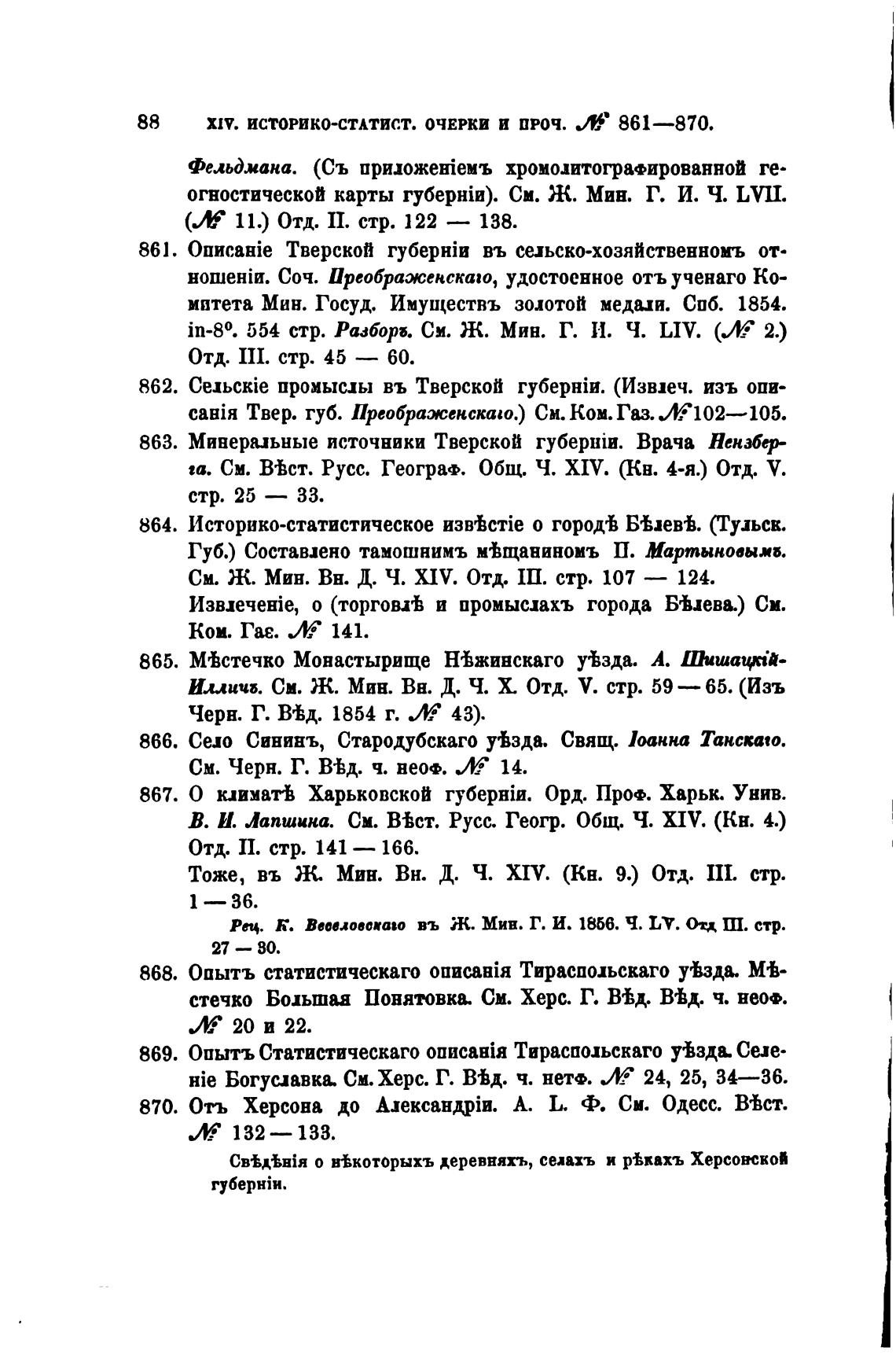 XW. ИСТОРИКО-СТАТИСТ. ОЧЕРКИ И ПРОЧ. 861—870.