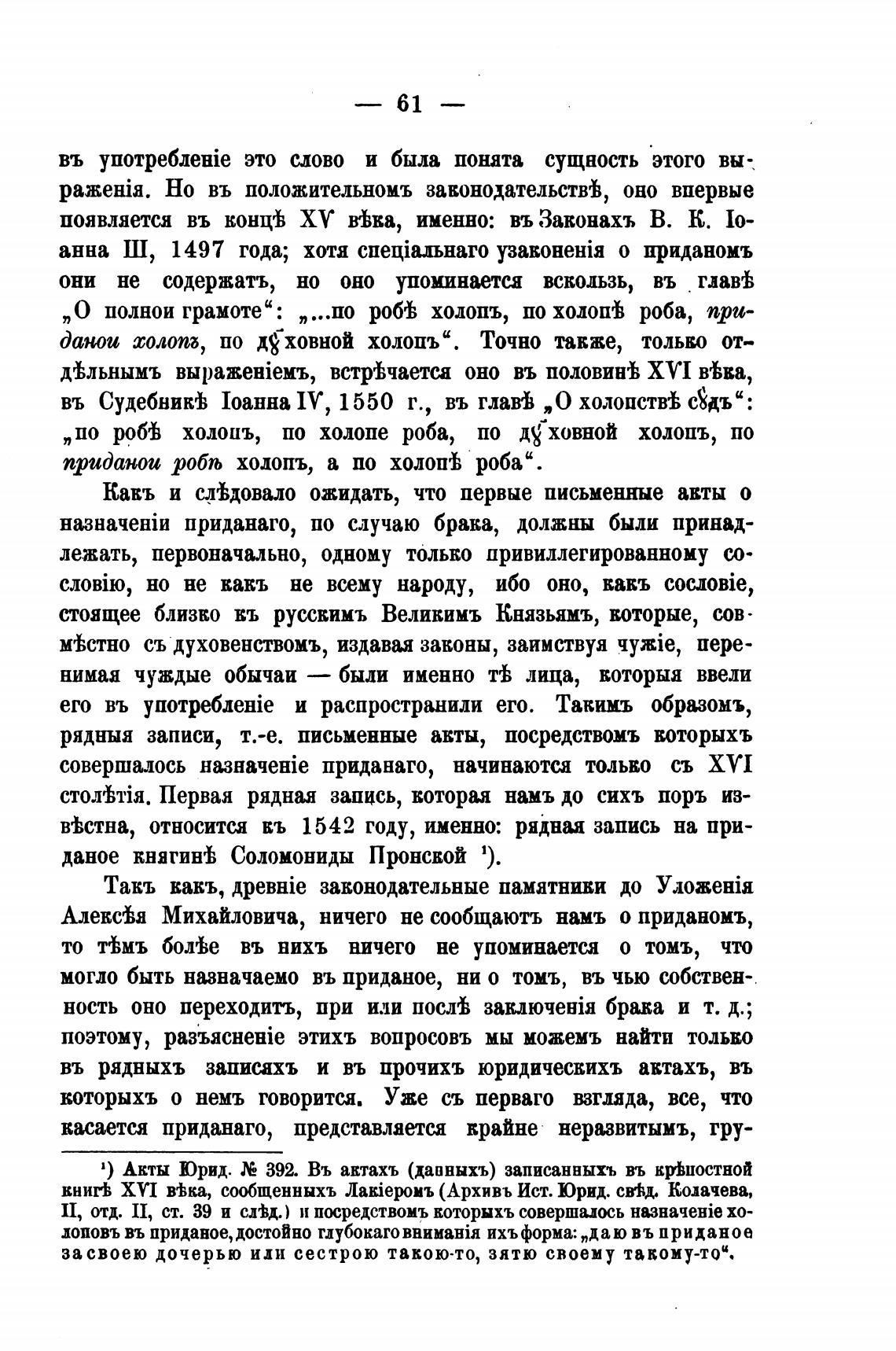 совершалось приданаго, начинаются только съ ХУ 1