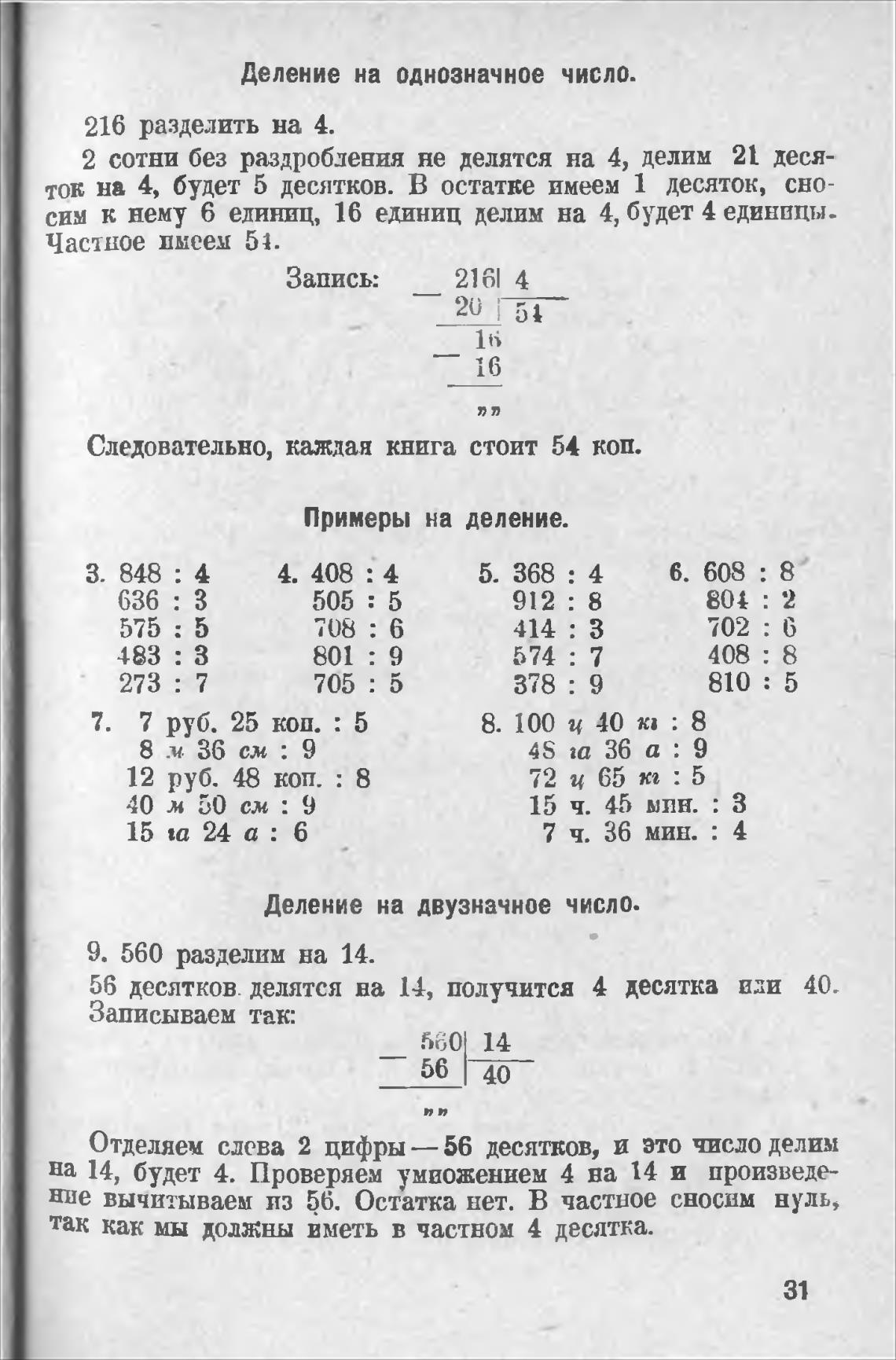 деление на однозначное число.