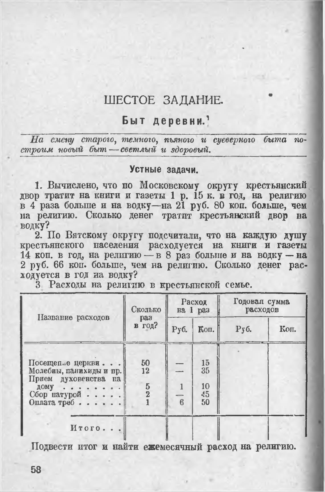З Расходы на религию в крестьянской семье.