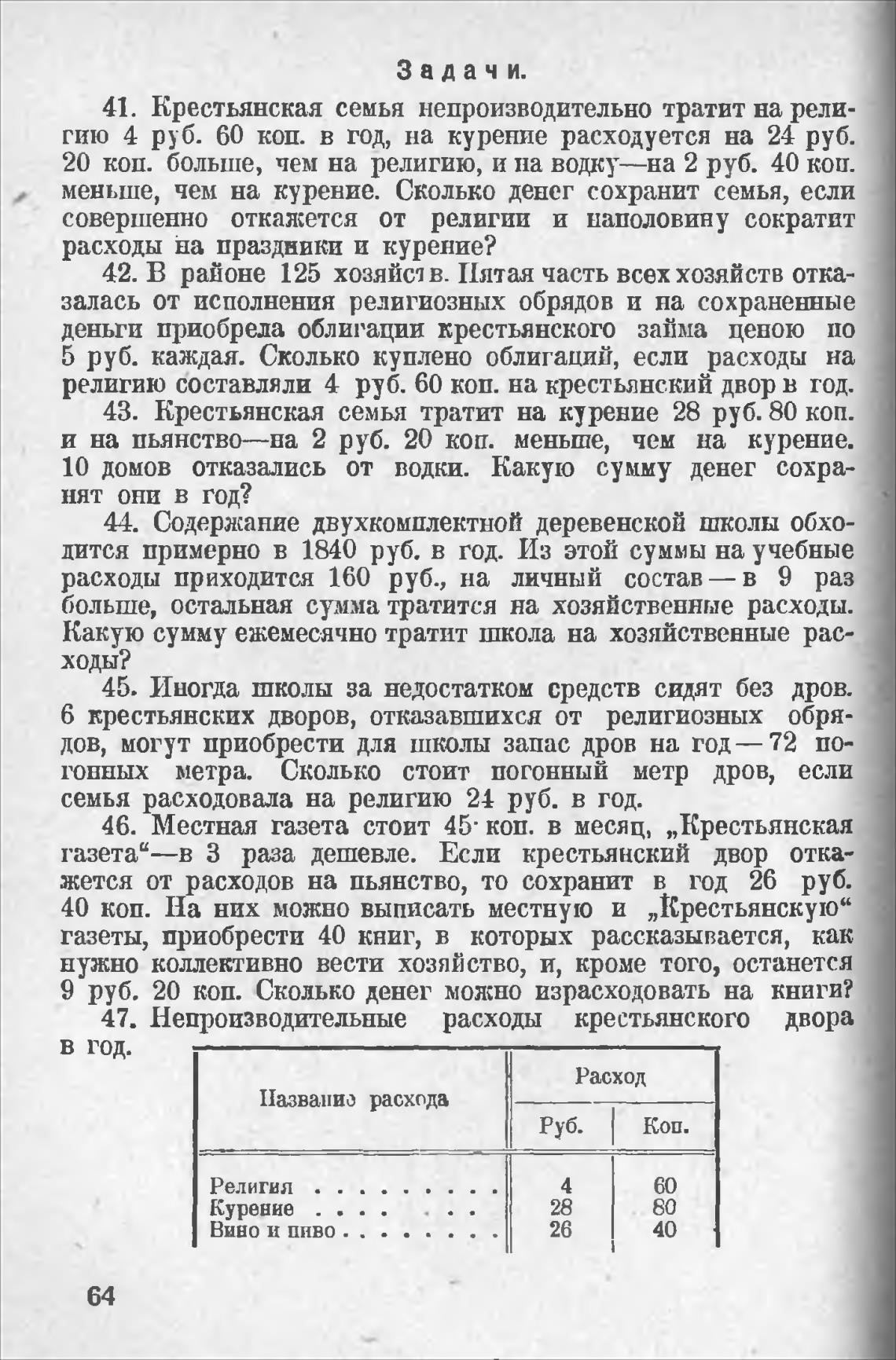 43. Крестьянская семья тратит на курение 28 руб. 80 коп.