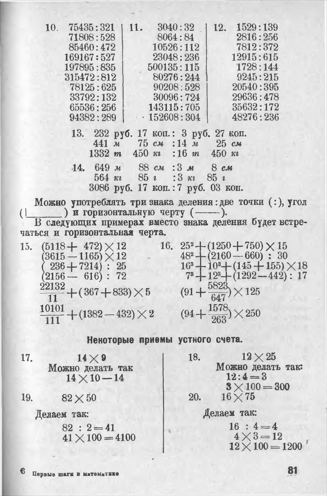 В следующих примерах вместо знака деления будет встре-