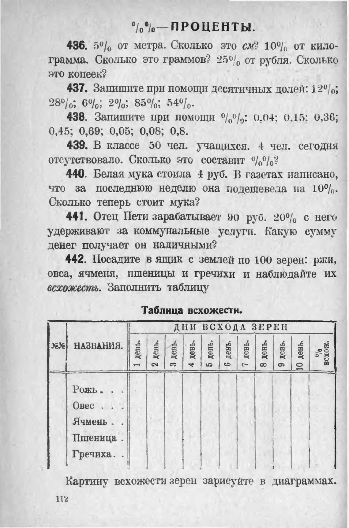 442. Посадите в ящик с землей по 100 зерен: ржи,