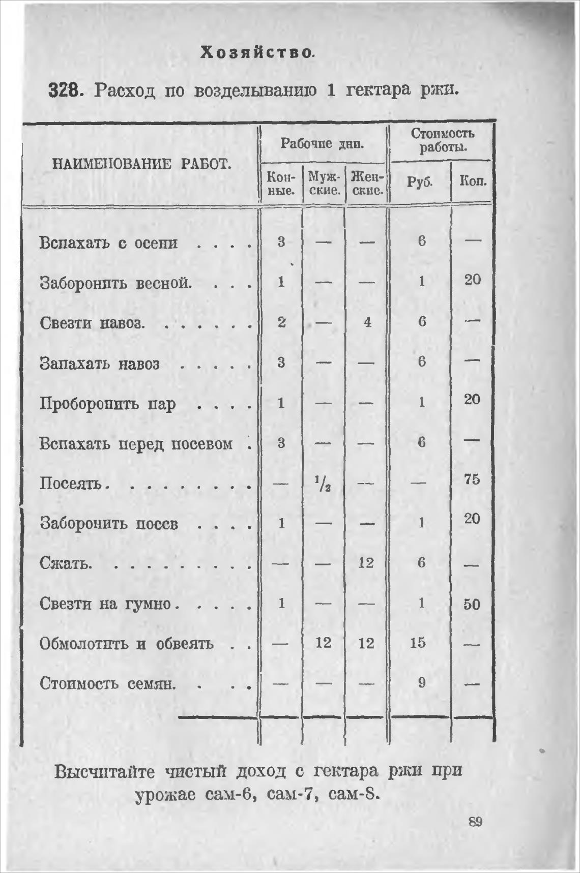 328. Расход по возделываншо 1 гектара ржи.