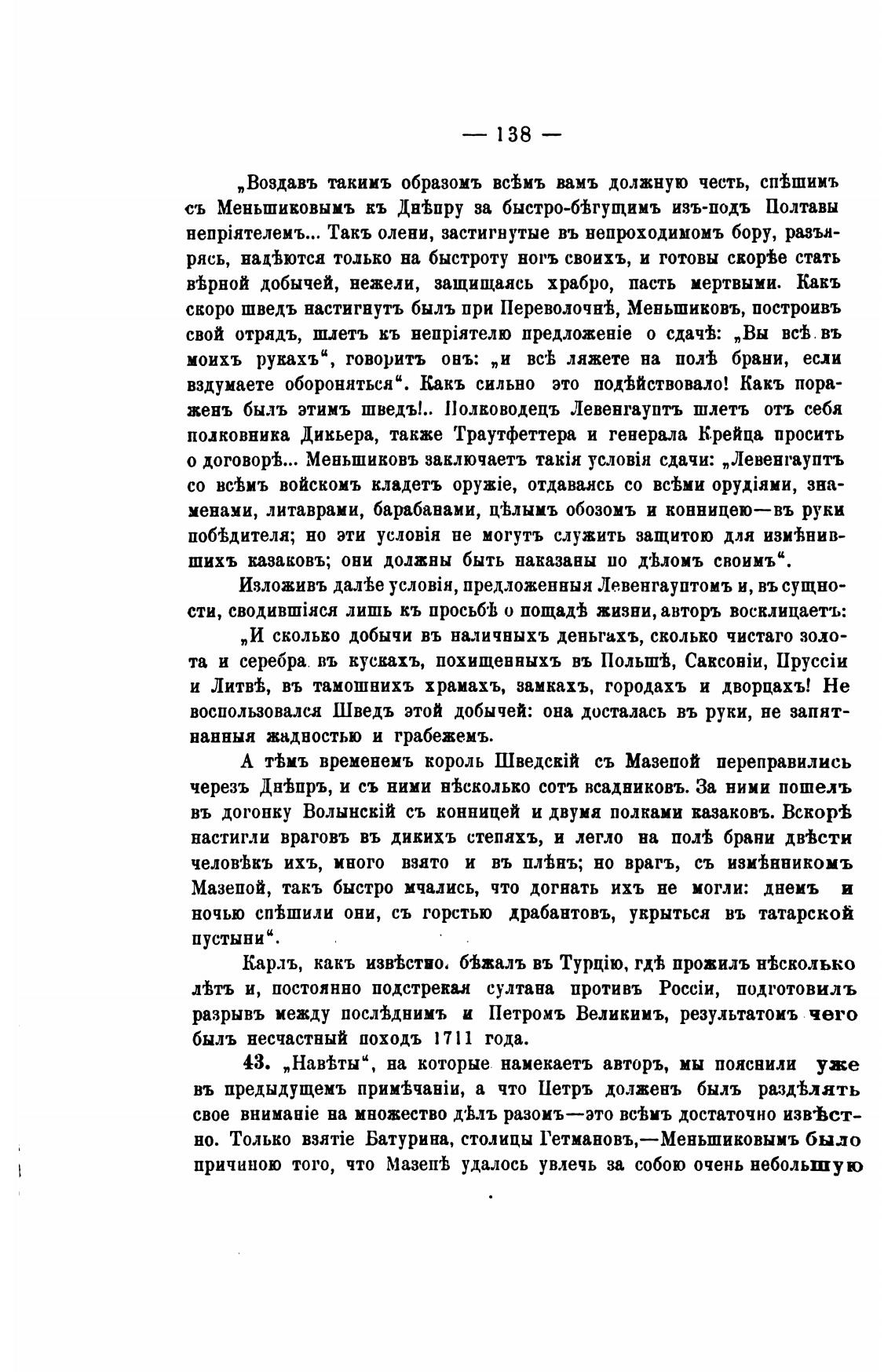 скоро шведъ настигнуть быль при Переволочй, Меньшиковъ, построивъ