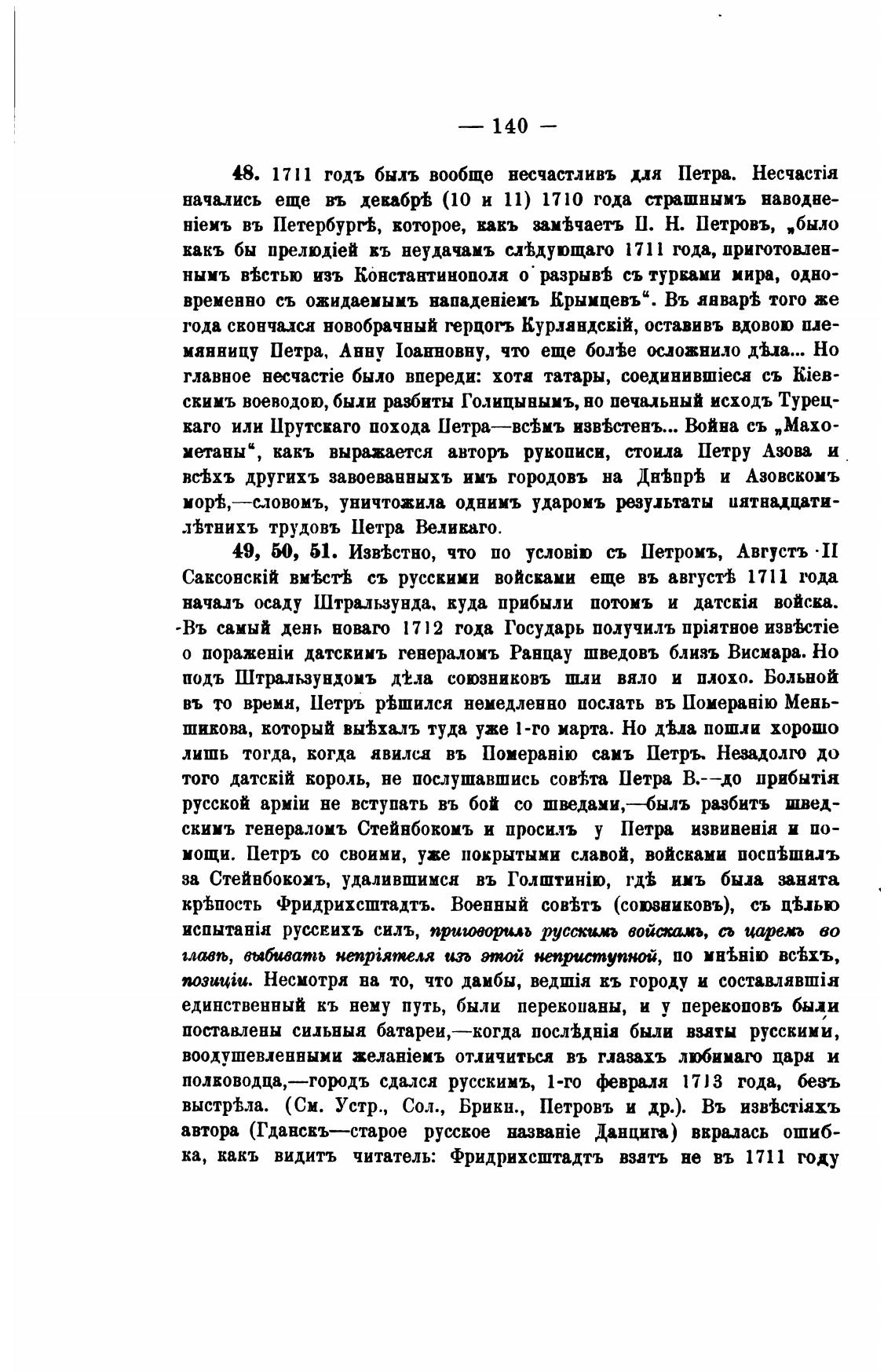 48. 1711 годъ быль вообще несчастливъ мя Петра. HecqacTia