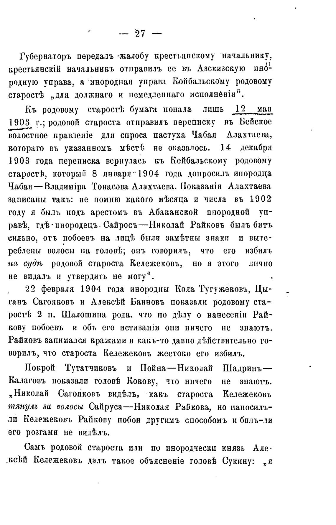 1903 г.; родовой староста отправилъ переписку въ Бейское