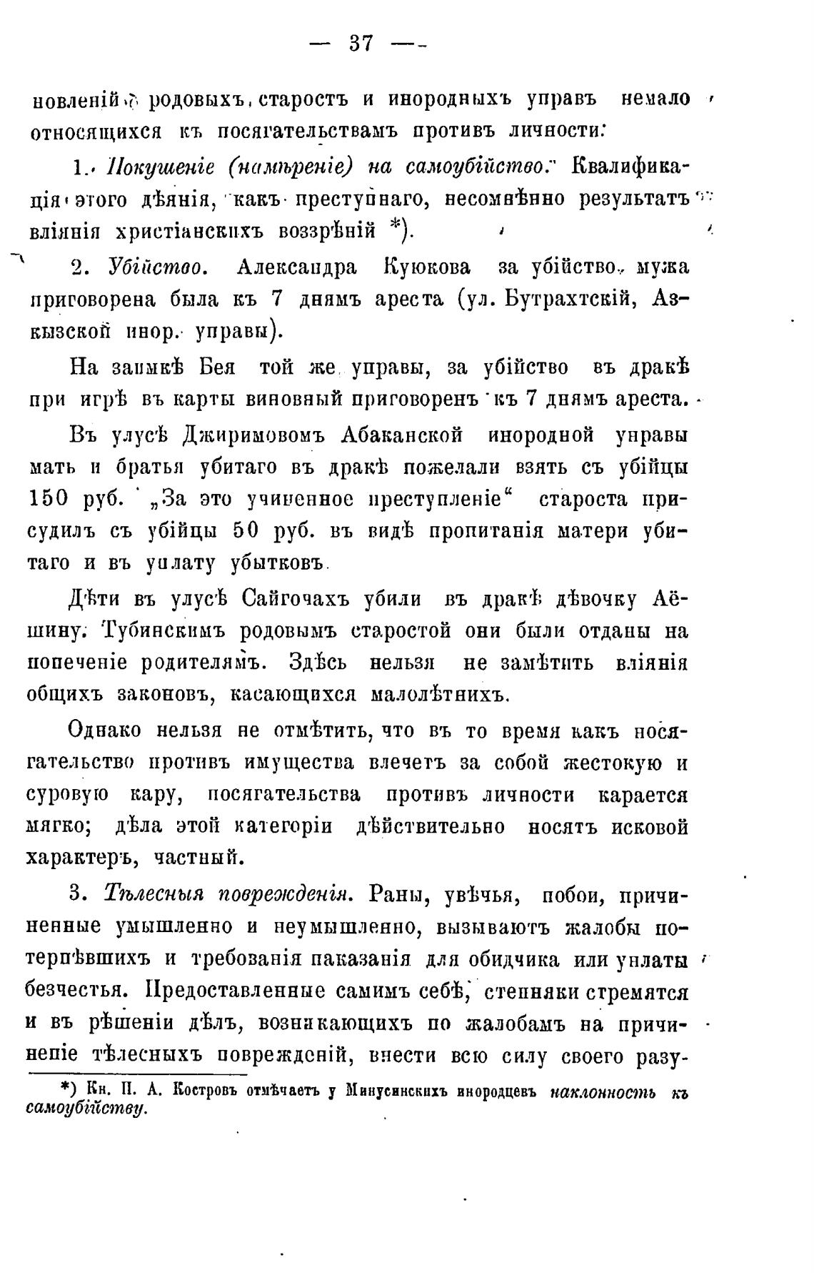 *) Кн. П. А. Костровъ отмжаетъ у Минусинскихъ внородцевъ наклонность кь