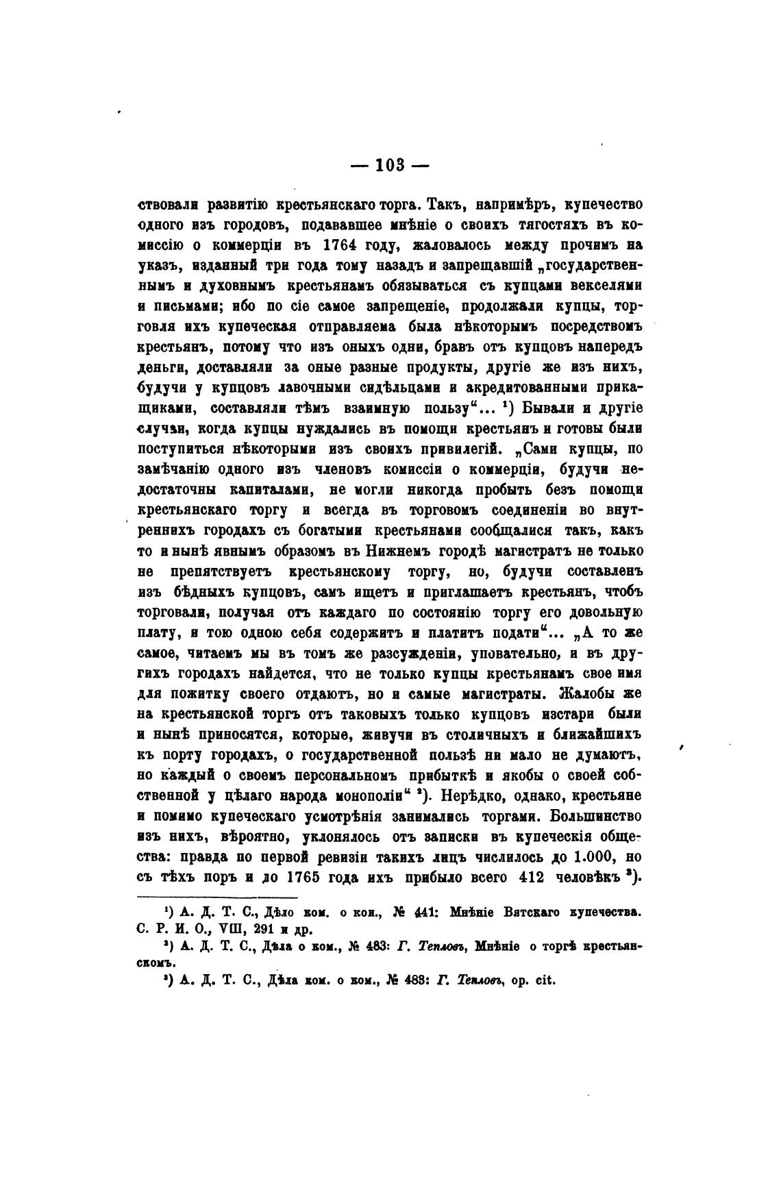 о коммерцЈи въ 1764 году, жаловалось между прочимъ на