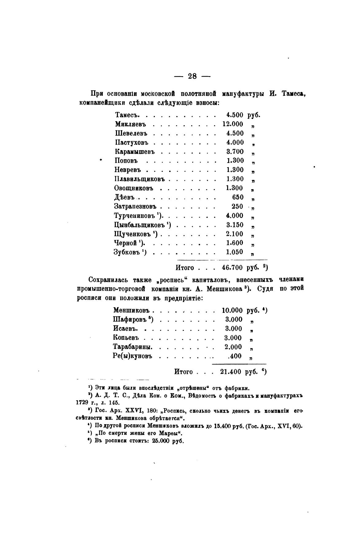 По другой росписи Меншиовъ вдожихъ до 15.0 руб. (Гос. Арх., XVI, Ю).