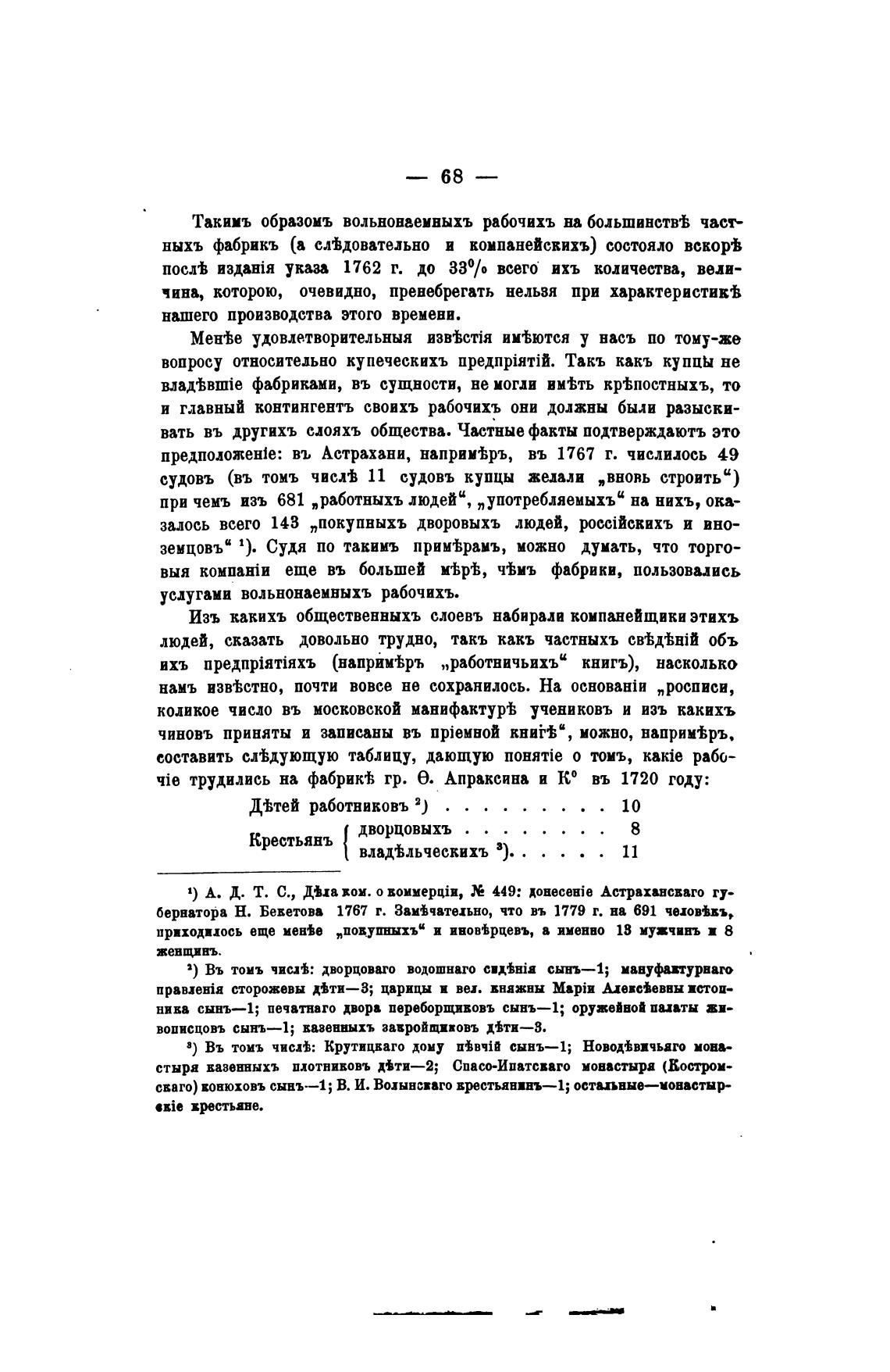 чје трудились на фабрик1; гр. е. Апраксина и ко въ 1720 году: