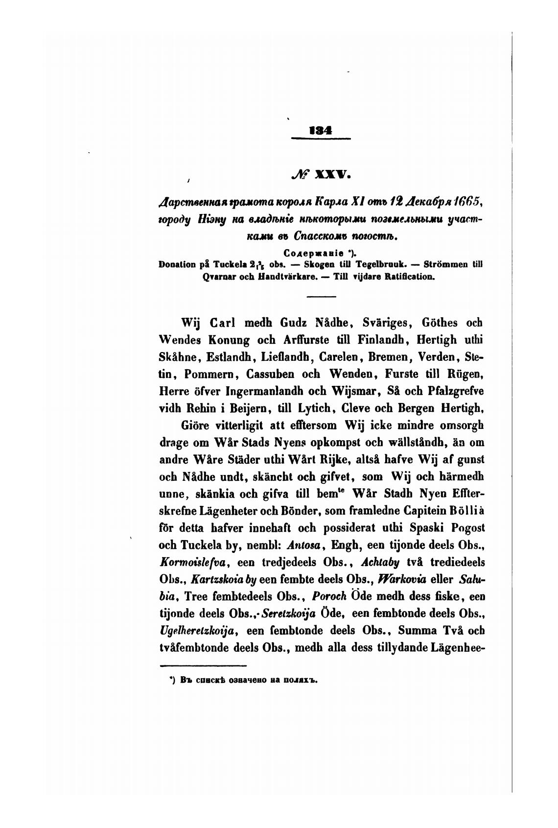 Дарственная грамота коря Карла Х] ото 19 Декабря 1665,