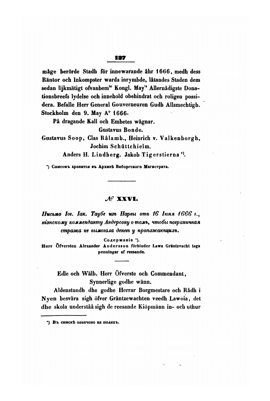 • ) Списокъ храаитса въ Архи“ Виборгскаго Магистрата.